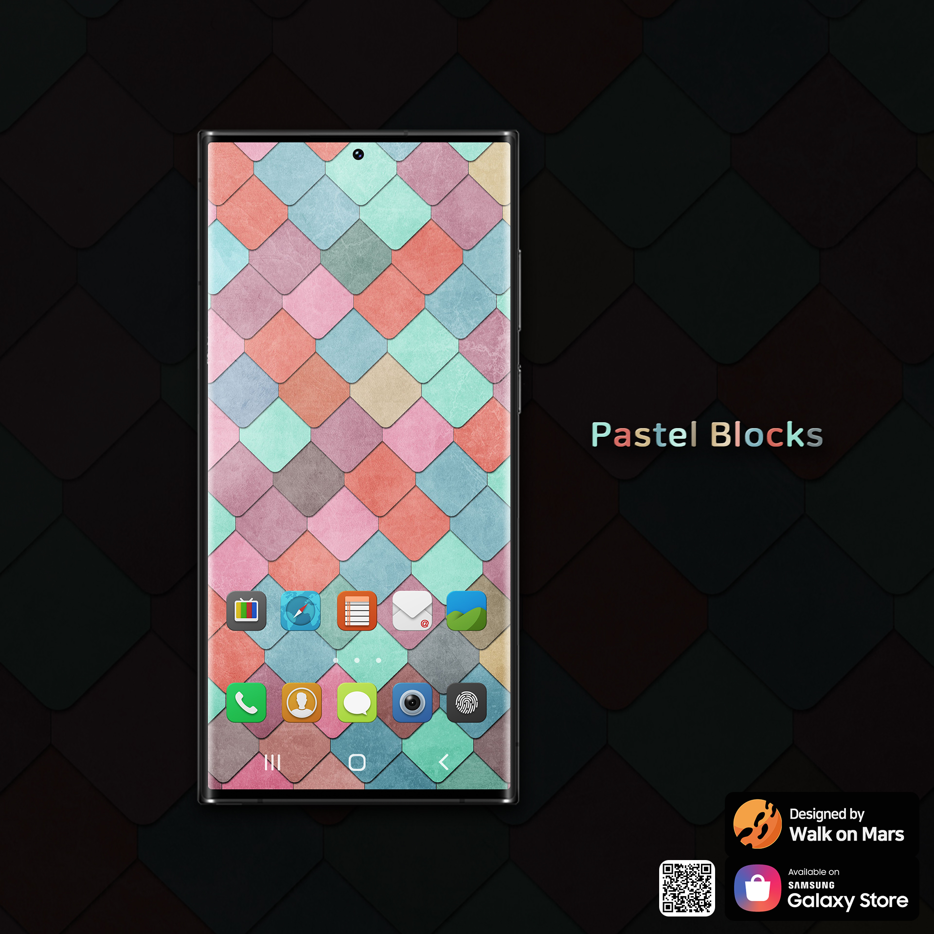 Walk on Mars의 Pastel Blocks 테마는 갤럭시 테마 스토어를 통하여 다운로드하실 수 있습니다.
