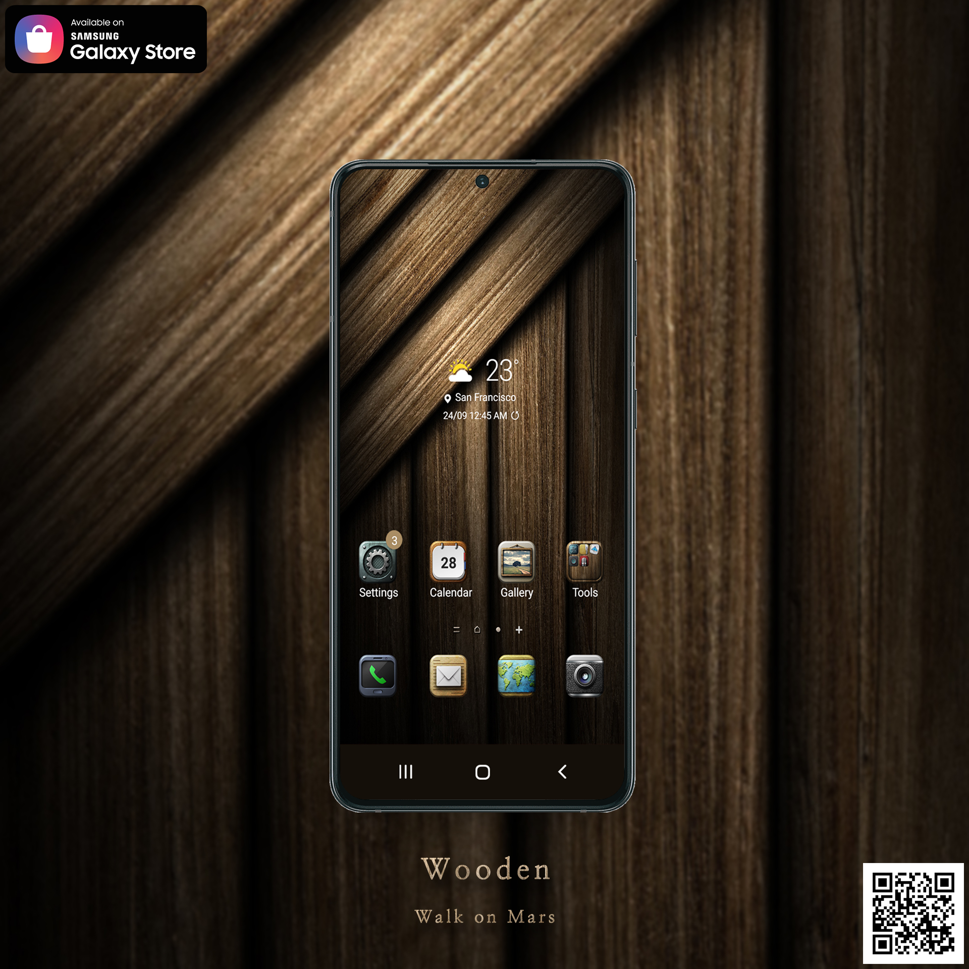 Now it's available to download our paid theme 'Wooden' by Walk on Mars through Galaxy theme store.