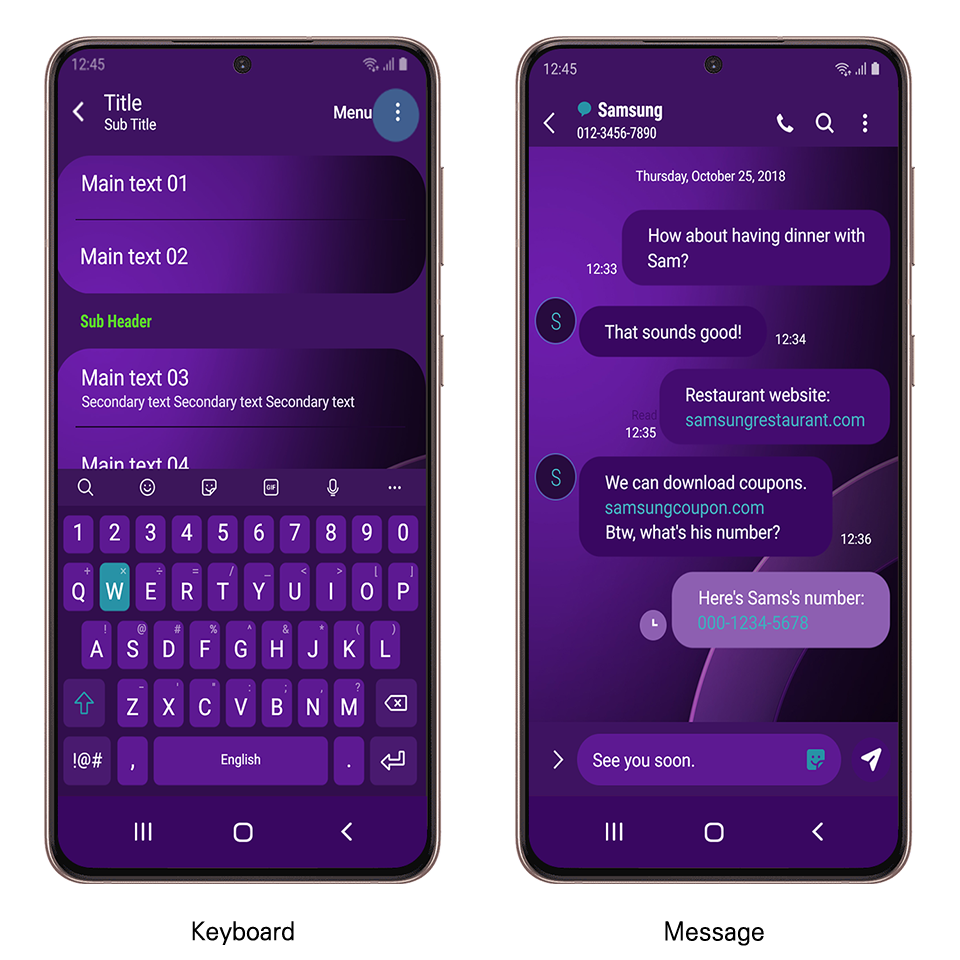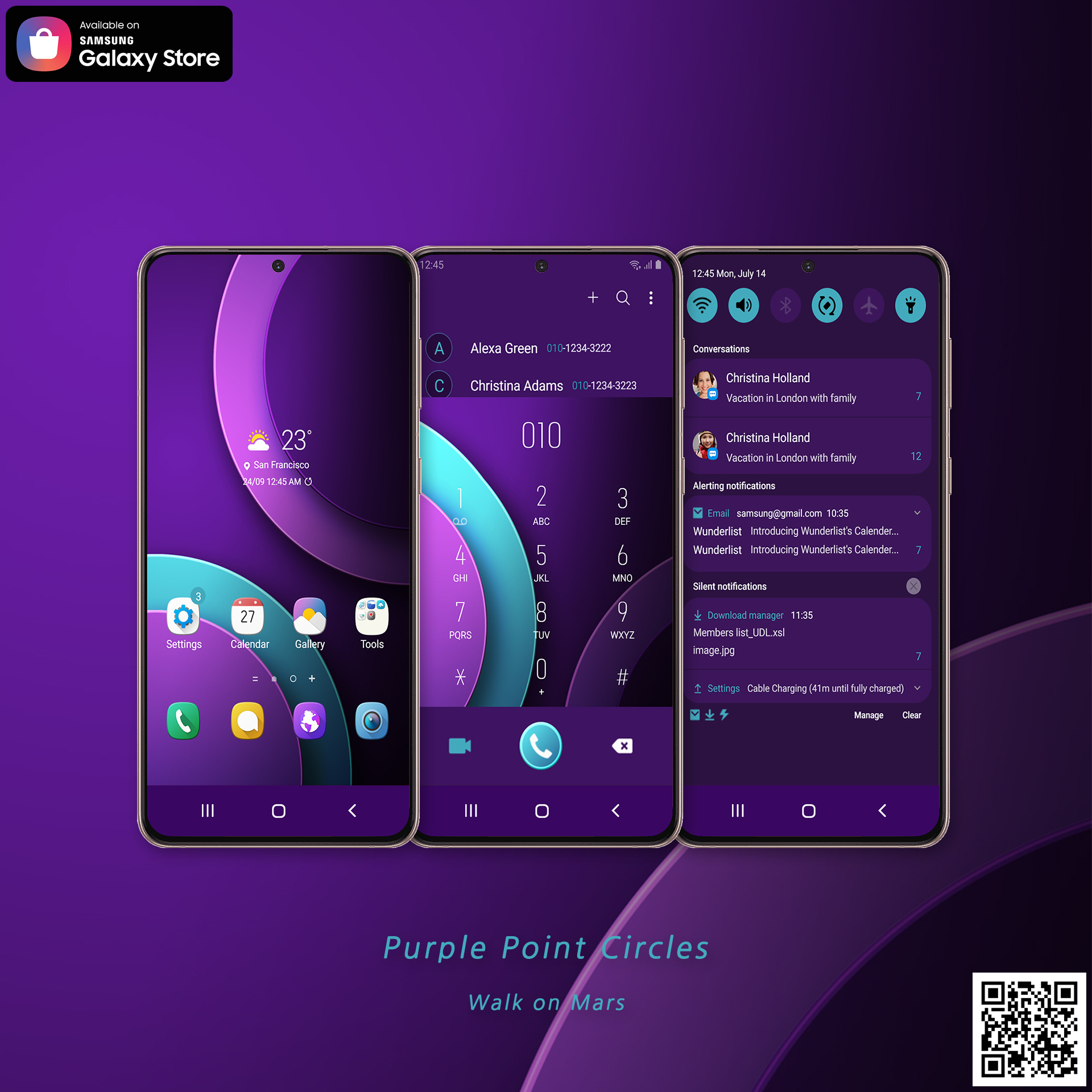Walk on Mars의 Purple Point Circles 테마는 갤럭시 테마 스토어를 통하여 다운로드하실 수 있습니다.