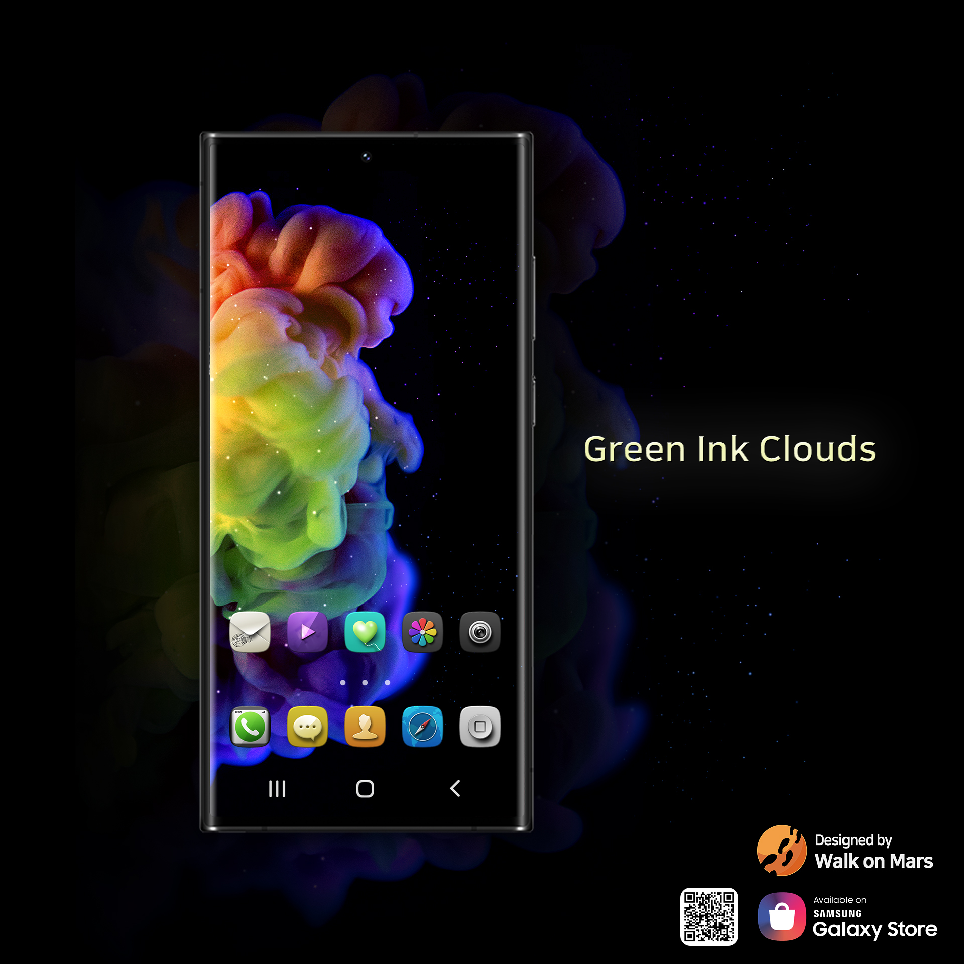 Now it's available to download our paid theme 'Green Ink Clouds' by Walk on Mars through Galaxy theme store.