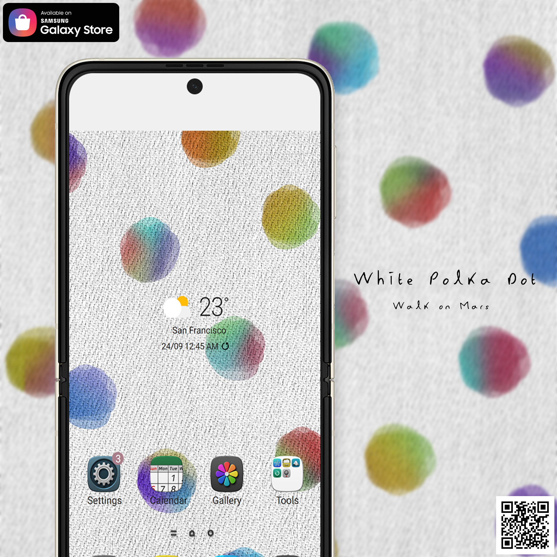 Now it's available to download our paid theme 'White Polka Dot' by Walk on Mars through Galaxy theme store.