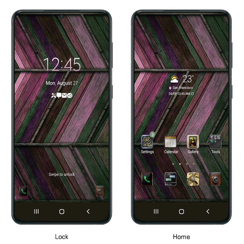 Now it's available to download our paid theme 'Purple Hardwood' by Walk on Mars through Galaxy theme store.