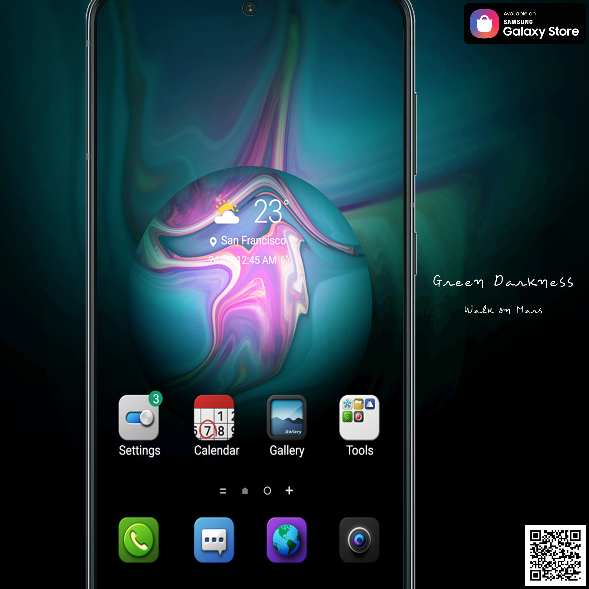 Now it's available to download our paid theme 'Green Darkness' by Walk on Mars through Galaxy theme store.