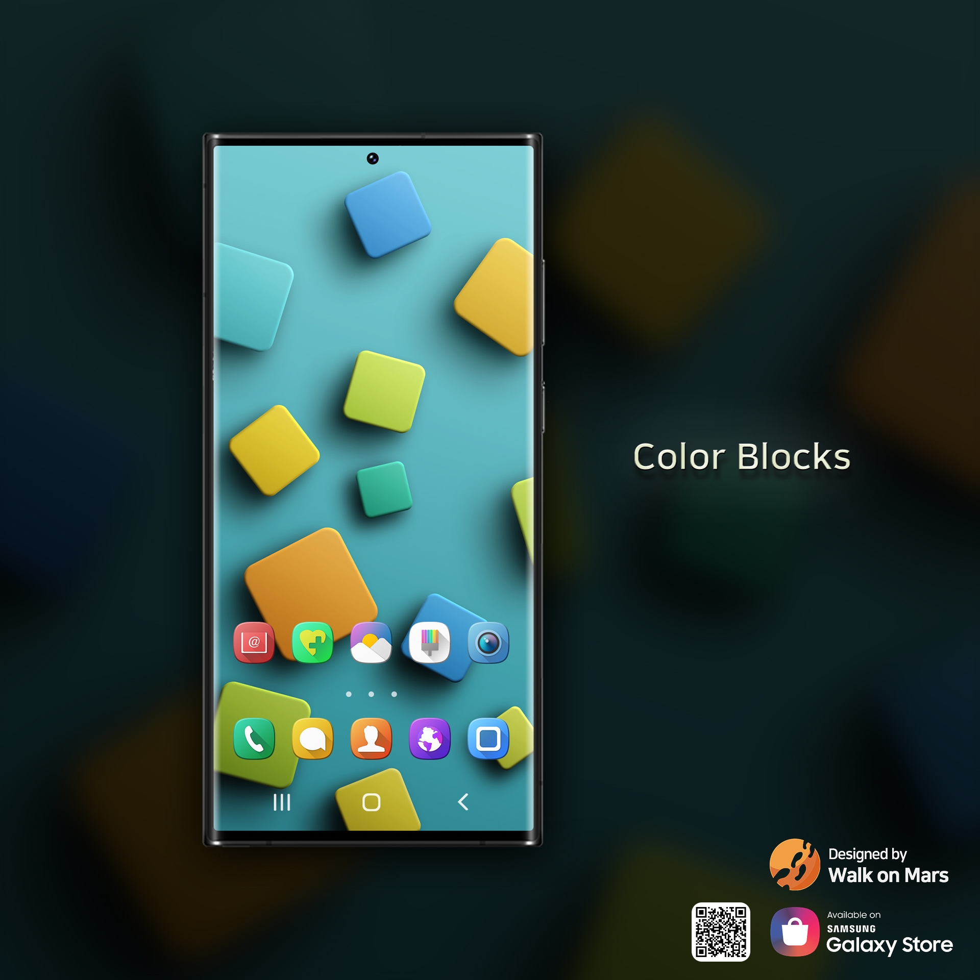 Walk on Mars의 Color Blocks 테마는 갤럭시 테마 스토어를 통하여 다운로드하실 수 있습니다.