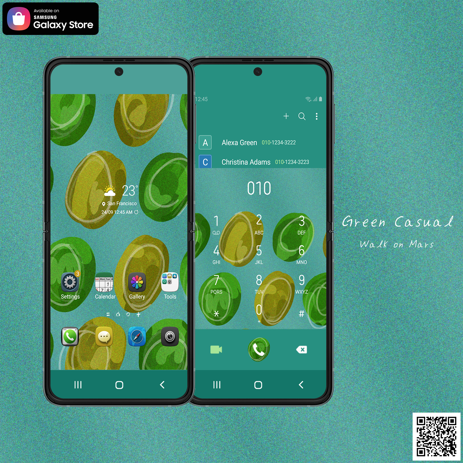 Now it's available to download our paid theme 'Green Casual' by Walk on Mars through Galaxy theme store.