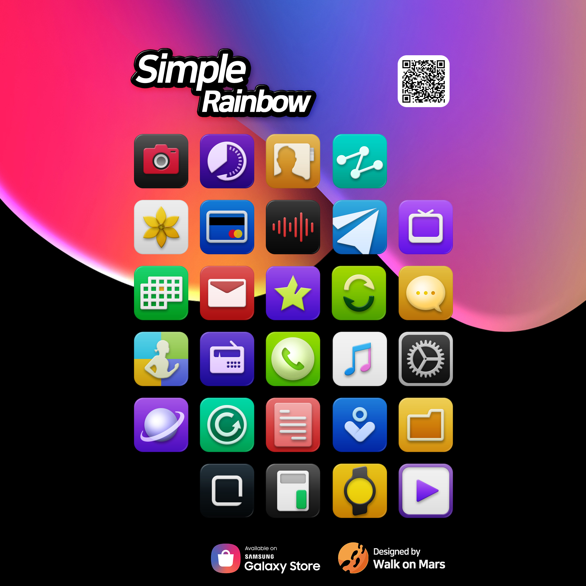Now it's available to download our new paid icon pack 'Simple Rainbow' by Walk on Mars through Galaxy theme store.